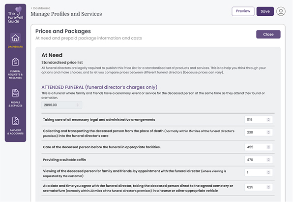 Listing your funeral business on The Farewell Guide is free, and you only pay for the funeral enquiries you choose to contact, at a 50% introductory discount: £12.50 per enquiry. For unlimited free requests we also offer a 50% introductory discount at £25/month. There are no further or hidden fees.