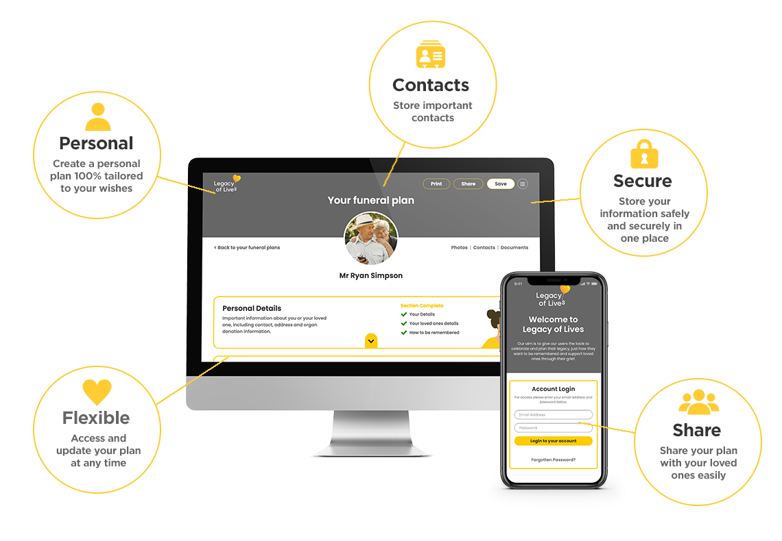 This is where we can help. With The Farewell Guide you can store your wishes, important documents, contacts and notes safely in one place – and share them easily with your loved ones.