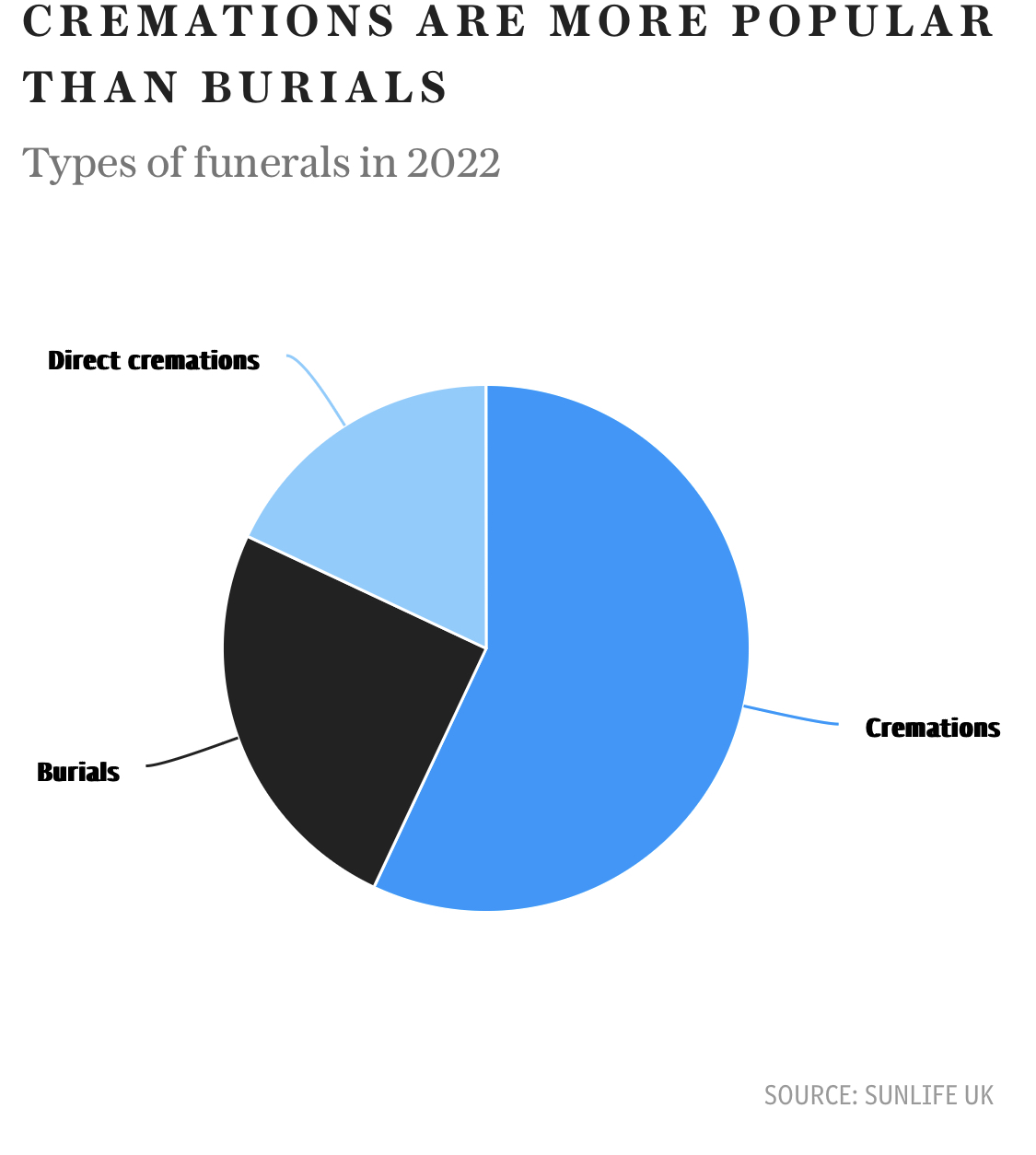 As the traditional funeral format becomes less popular, more people are being drawn to the notion of giving a loved one a “fuss-free farewell” on a budget, with direct cremations now making up almost a fifth (18pc) of all services.